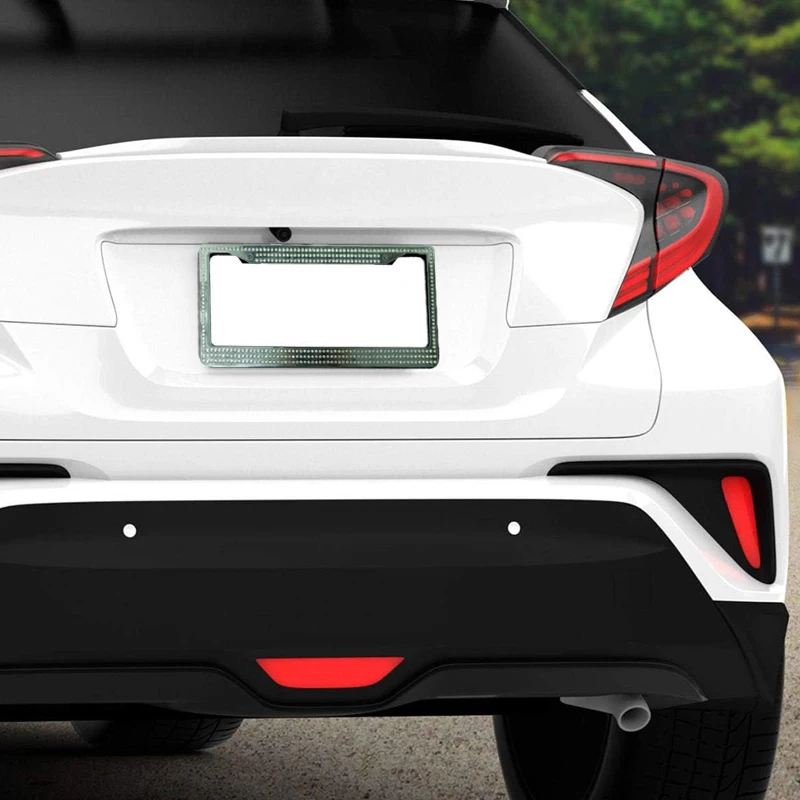 The rhinestones around the entire license plate frames which can be refracted color under different light |