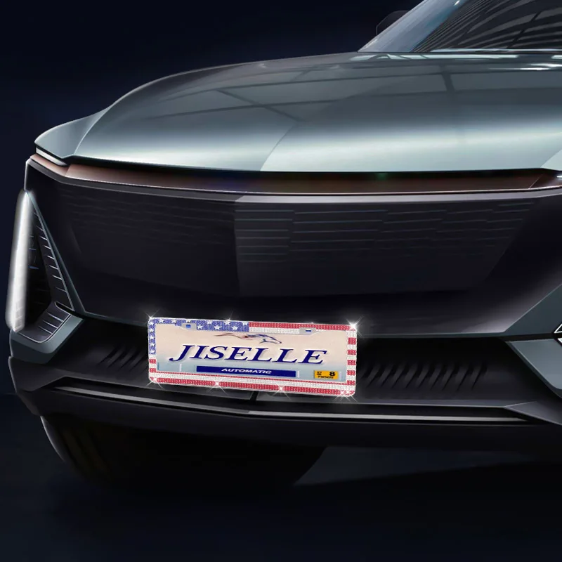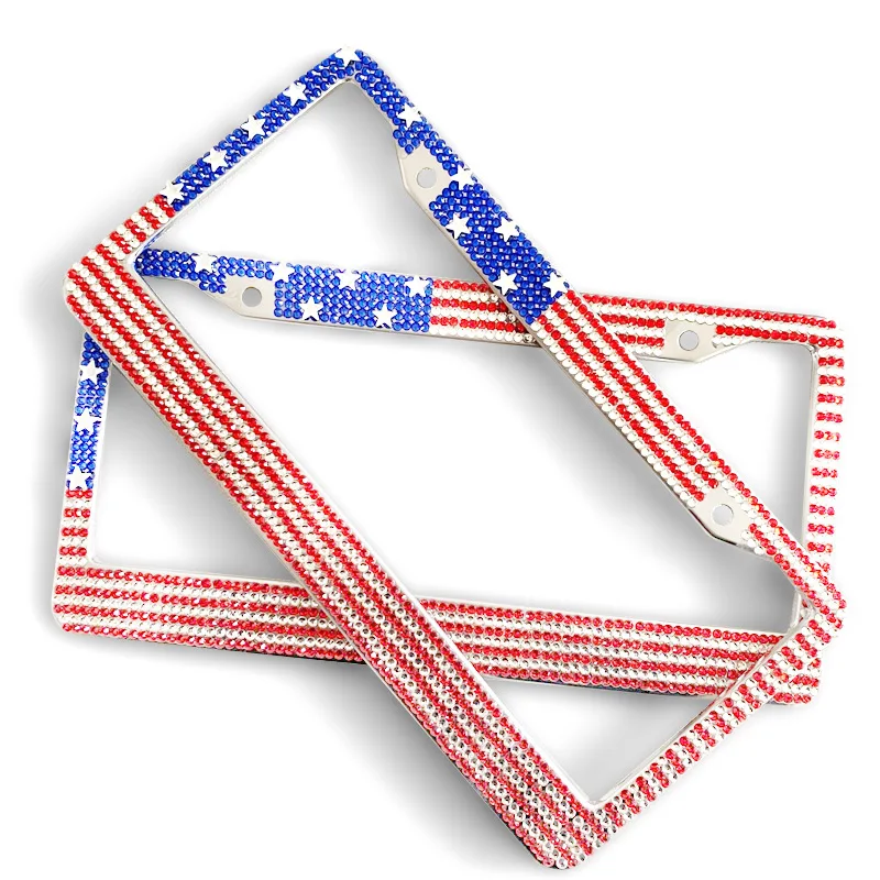 USA Flag Sparkly Bling License Plate Frame Stainless Steel Rhinestone License Plate Holder Glitter Crystal License Plate
