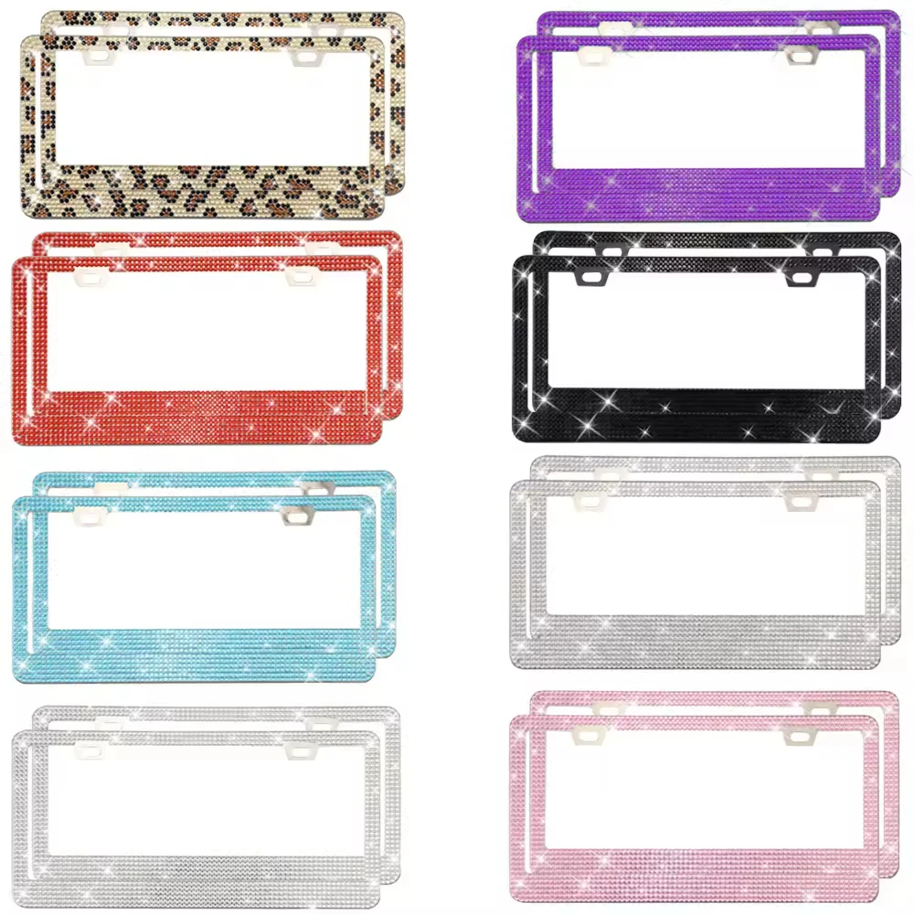 The rhinestones around the entire license plate frames which can be refracted color under different light. |